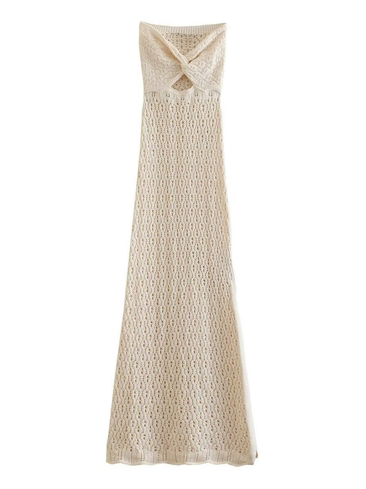 Bra-Style Strapless Open Mesh Hollowed-Out Knitted Wrap Dress