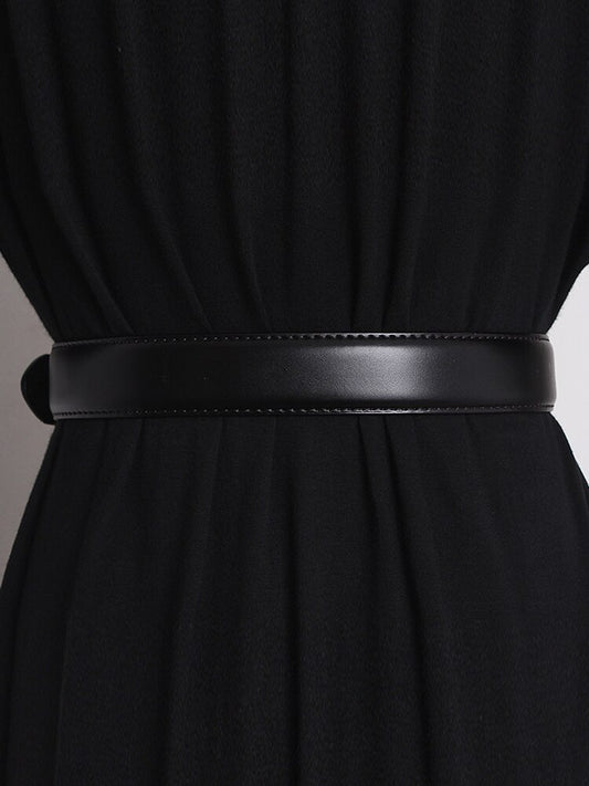 Golden Button High Waist Leather Belt